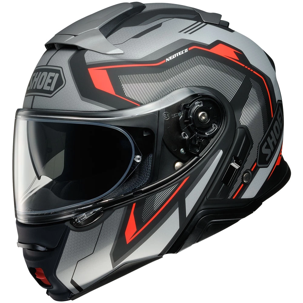 Neotec II è presentato in 7 colori e 3 varianti grafiche con una calotta dal design aggressivo e compatto, nuova la soluzione adottata per i guanciali dotati di “Noise Isolator”(barriere del suono) – che limita l’ingresso dell’aria dal basso e la presenza nella parte del mento di uno spoiler (Aero Deflector) – tutti testati nella galleria del vento di proprietà – per una guida più rilassata e priva di turbolenze. Inoltre Neotec II è predisposto al montaggio del Sistema di comunicazione SENA SRL (SHOEI RIDER LINK), che risulta essere perfettamente integrato con la calotta, evitando l’applicazione di centraline esterne.